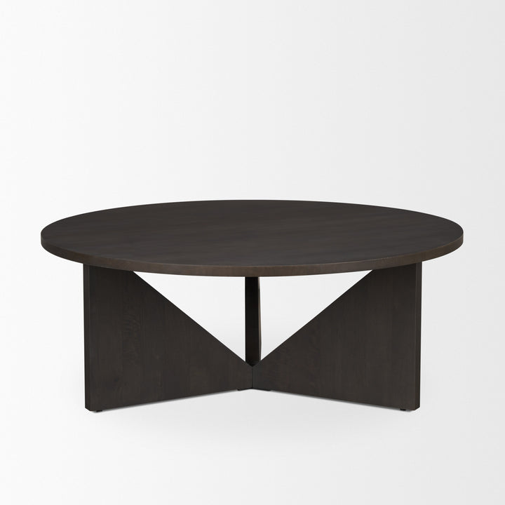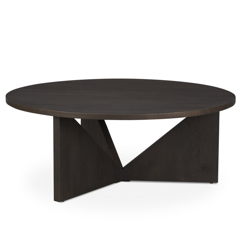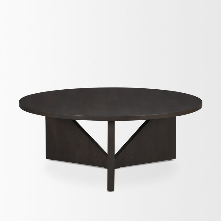 The Tarro Wooden Brown Coffee Table is a perfect blend of modern design and classic elegance, making it a standout piece in any living room. Its round tabletop, crafted from solid mango wood, showcases a striking geometric design that is both eye-catching and functional. The table's rich, smooth dark brown finish adds an element of sophistication, enhancing its visual appeal and ensuring it complements a variety of interior styles. This coffee table serves as a captivating centerpiece, offering both style and utility to your space.