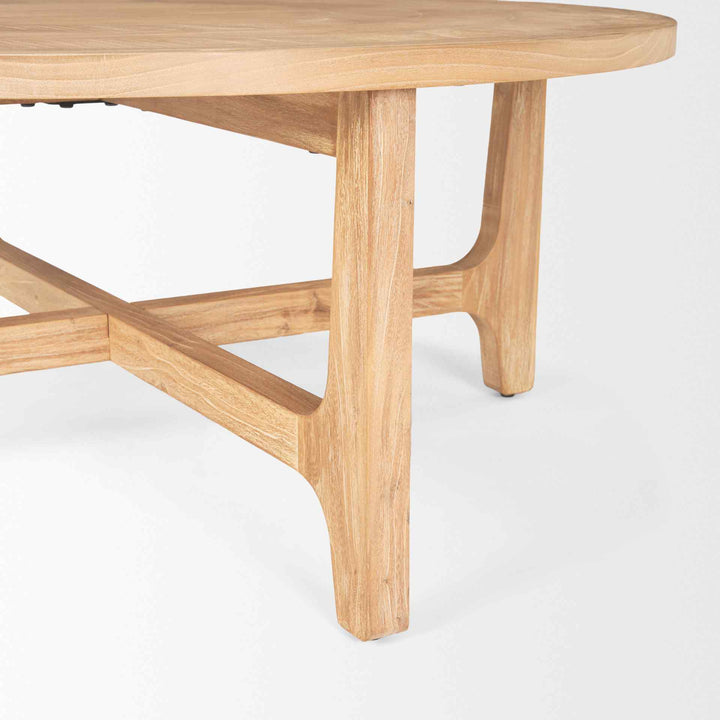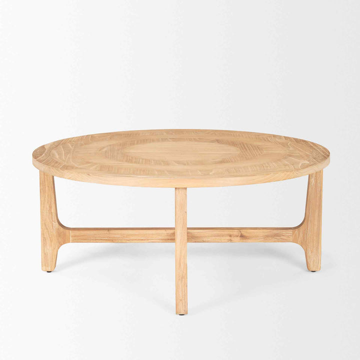 The Taylin Light Brown Wood Coffee Table brings a touch of rustic charm to any living space. Crafted from solid elm wood, this piece boasts a natural light stain that is delicately whitewashed and subtly pickled with a light wire brush finish. This technique enriches the wood's grain, offering a captivating visual texture that complements its minimalist design. The tabletop features a mesmerizing inlay pattern, finished smooth, adding an extra layer of intrigue to its simple silhouette. With four sturdy legs and bracing, this round coffee table is both stylish and functional, fitting seamlessly into various decor styles.
