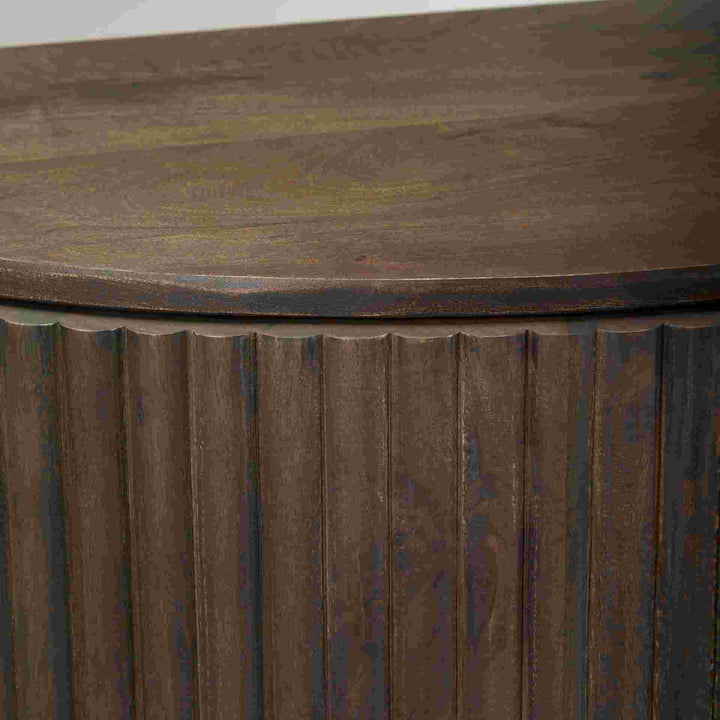 The Terra Wood Accent Cabinet is a stylish addition to any home, offering both form and function. Crafted from solid mango wood, it features a rich, dark-light brown stain that exudes warmth and elegance. The fine sandblasted texture adds a unique touch, highlighting the cabinet's intricate fluted detailing. This cabinet is more than just a storage solution; it’s a statement piece that enhances any room's aesthetic with its modern design and sleek finish.