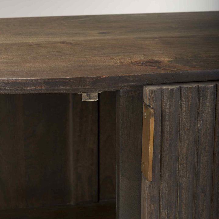 Terra Wood Accent Cabinet With Fluted Doors And Iron Handles Features: