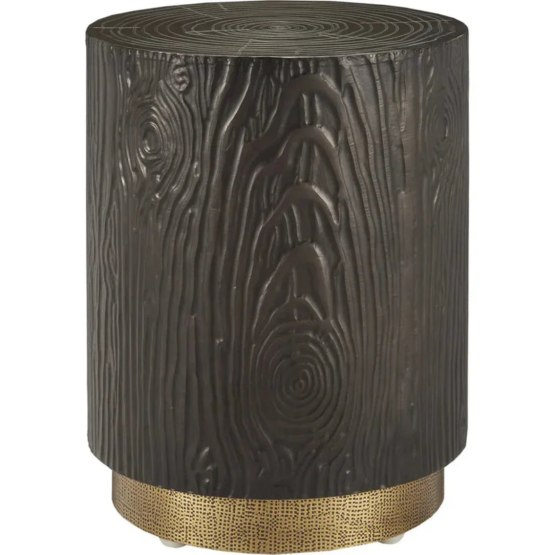 This piece truly exemplifies artisanal furniture at its finest. With a surface crafted from metal wrapped over a hand-carved wood substrate, the Terra Accent Table seamlessly replicates the look of natural wood grain. Once the intricate detailing is complete, the top columnar section is bronzed and the base is finished in a lightly textured brass. Each table is meticulously handmade, ensuring a one-of-a-kind work of art for your home. Elevate your living space with the unparalleled elegance of the Terra Accent Table from Currey Co.