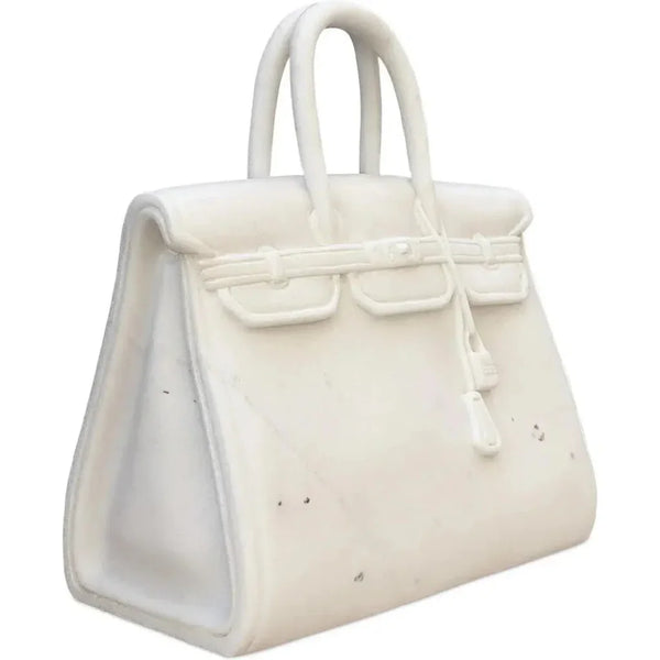 Cementing the profile of an iconic purse is The Princess, an ivory marble sculpture that will ornament a vignette with its classic notoriety. Given this white sculpture is made from natural marble, the surface of each will vary—some with more and others with less veining. This is the perfect decorative accessory for a fashion-conscious customer.