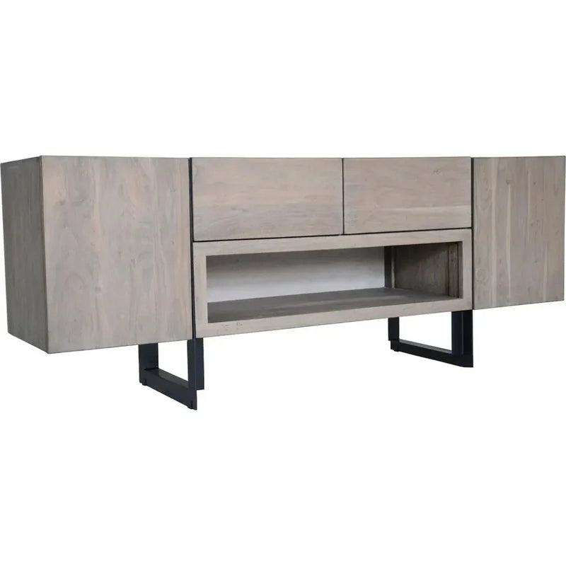 Tiburon Solid Acacia and Iron Grey Media Cabinet Features: