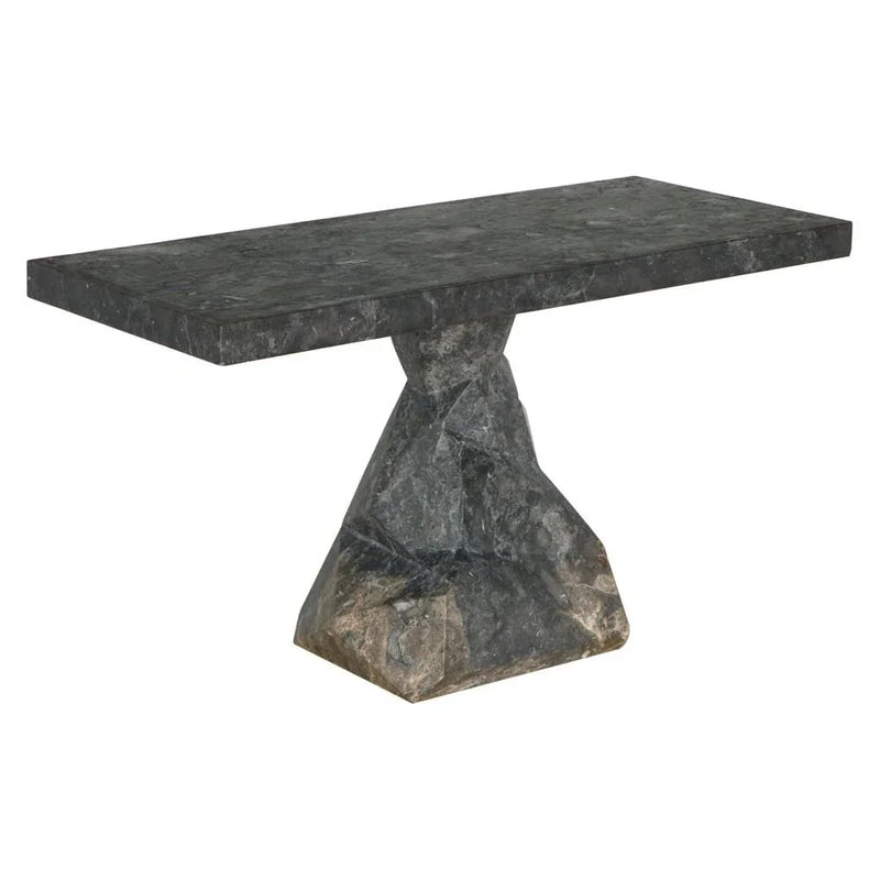 Transform your space with the elegance of the Tilden Console. Its sleek black and white marble surface exudes sophistication, while the minimalist design effortlessly complements any decor. Perfect for showcasing your favorite pieces or adding a touch of luxury to your entryway, the Tilden Console is where timeless beauty meets modern charm. Make every moment in your home a little more special. The Tilden Console offers a striking presence with its dark marble finish, enhancing the beauty of its stone texture. Its geometric pedestal base provides stability and adds a unique industrial flair to your living space.