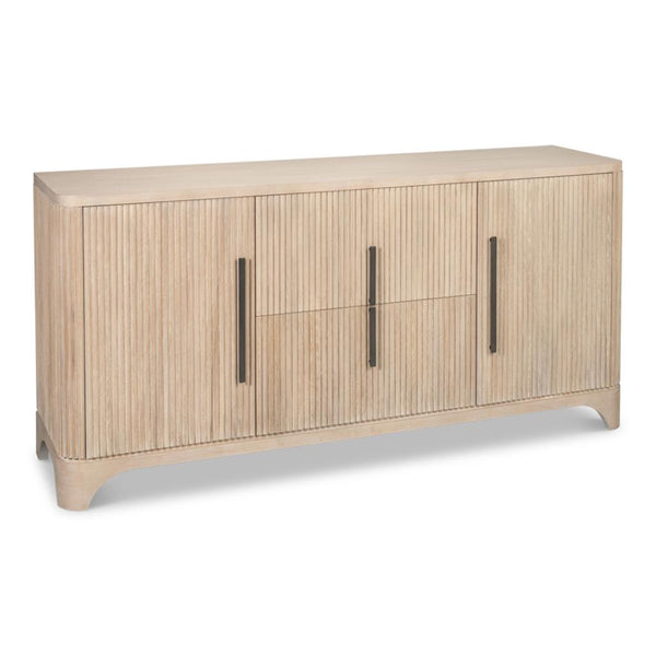 sideboard that feels substantial without overwhelming your dining room keeps many homeowners shopping for months -- most pieces either look too delicate for daily use or too bulky for a standard 12x12 room. The Sarreid Topsail Two Drawers Wood Credenza is a 76.5-inch Contemporary reeded-front sideboard built for dining rooms with tables that seat 8-10 people, available at LOOMLAN with free shipping to the continental US. This quarter oak veneer piece combines the storage capacity serious entertainers need with the coastal-inspired design that works in both formal dining rooms and casual eat-in kitchens. At 20 inches deep and 36 inches tall, the Topsail credenza provides the perfect serving height while keeping your dining room proportions balanced, whether you're staging a holiday dinner or storing everyday dishes and linens.