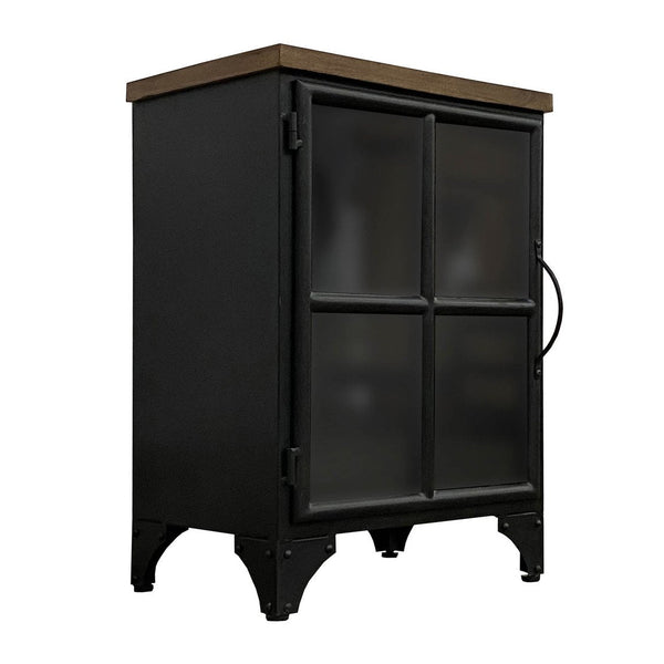 - Material: Mango Hardwood, Reclaimed Iron, Glass