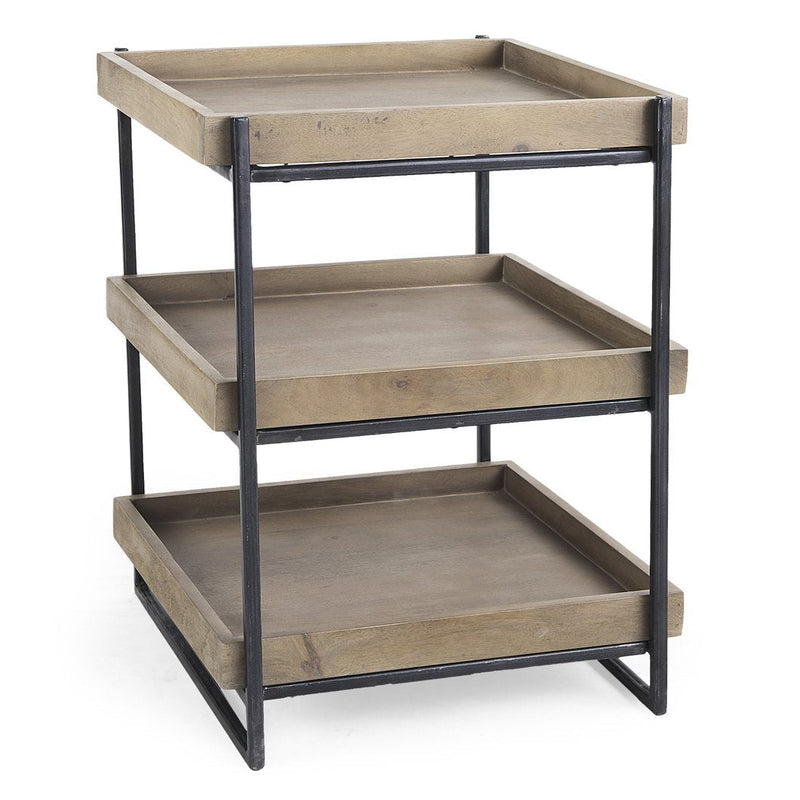 Solid wood creates the charm of the Trey Side Table, blending beautifully with a sleek iron frame. It's designed with three tray-like wooden tops, offering ample space for your essentials. The medium brown finish on the mango wood shelves pairs nicely with the coal-black iron frame, making it a versatile piece for any room. Whether placed beside your sofa, accent chair, or in a cozy corner of your bedroom or office, it adds a touch of modern elegance. This sturdy table not only provides functionality but also enhances the aesthetic of your space, fitting seamlessly into various decor styles.