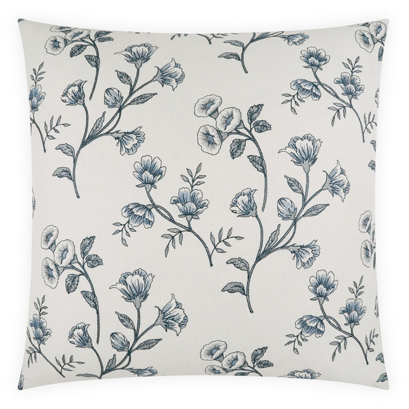 The Tulah Pillow combines elegance and comfort with its handcrafted design. Featuring a beautiful floral pattern on a cream background, it showcases dark blue flowers and leaves, adding a touch of nature to any room. Made with a blend of polyester and cotton, it provides a soft yet durable feel. The removable cover and insert allow for easy cleaning, while the hidden zipper maintains a seamless look. Handcrafted in California, each pillow is crafted with care and attention to detail. This pillow's turquoise and teal back adds a splash of color, making it a versatile addition to your decor.