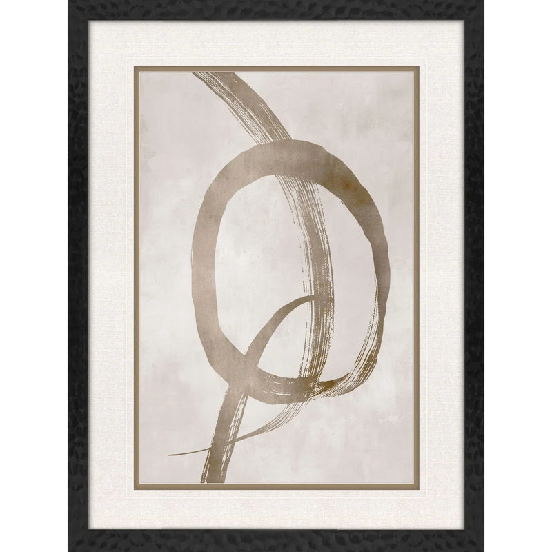 Crafted from a blend of materials, including paper, cardboard, extruded poly, and glass, this artwork promises durability and quality. The metallic color scheme offers a modern minimalistic appeal, while the circular and curved brown brushstrokes on a beige background provide a dynamic focal point. The glass front not only protects the artwork but also enhances its visual impact, ensuring it remains a striking centerpiece for years to come.