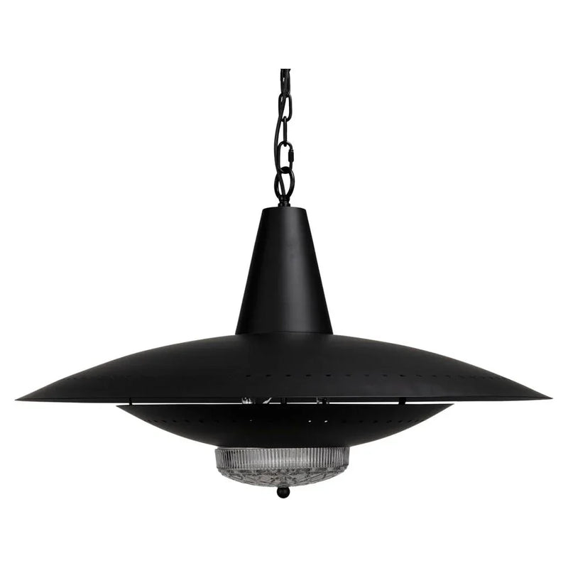 The UFO Pendant is an eye-catching lighting fixture that seamlessly complements a wide range of interior styles, from industrial to modern. Its striking design features a conical top and a circular disk shade, all finished in a sophisticated matte black. This pendant light is not just about looks; it’s built from durable industrial steel and decorative glass, promising a long-lasting addition to any room. The chain suspension adds a touch of charm and ensures secure installation, making it a practical yet stylish choice for your lighting needs. What sets this pendant light apart is its glass orb diffuser, which softens and spreads the light evenly across any space.