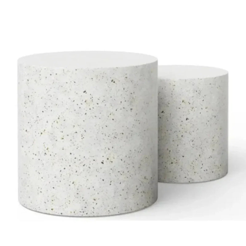 Mixx Una Pedestal Set of 2 Unique Ivory Terrazzo Features: