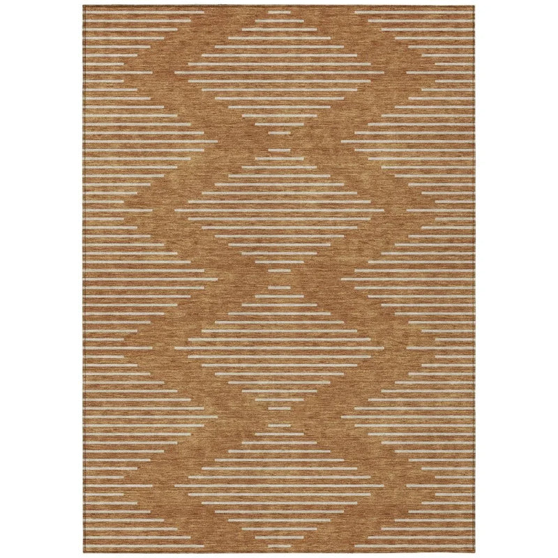 The Velina Orange Washable Rug is designed to add a vibrant touch to any space while offering practical benefits for everyday living. Featuring a striking geometric pattern centered around a diamond motif, this rug effortlessly complements transitional design schemes. Its UV-stabilized material ensures durability, making it suitable for both indoor and outdoor settings. The ultra-thin design allows it to fit seamlessly under doors and furniture. Perfect for families and pet owners, its machine-washable feature ensures easy maintenance, keeping the rug looking fresh and new.