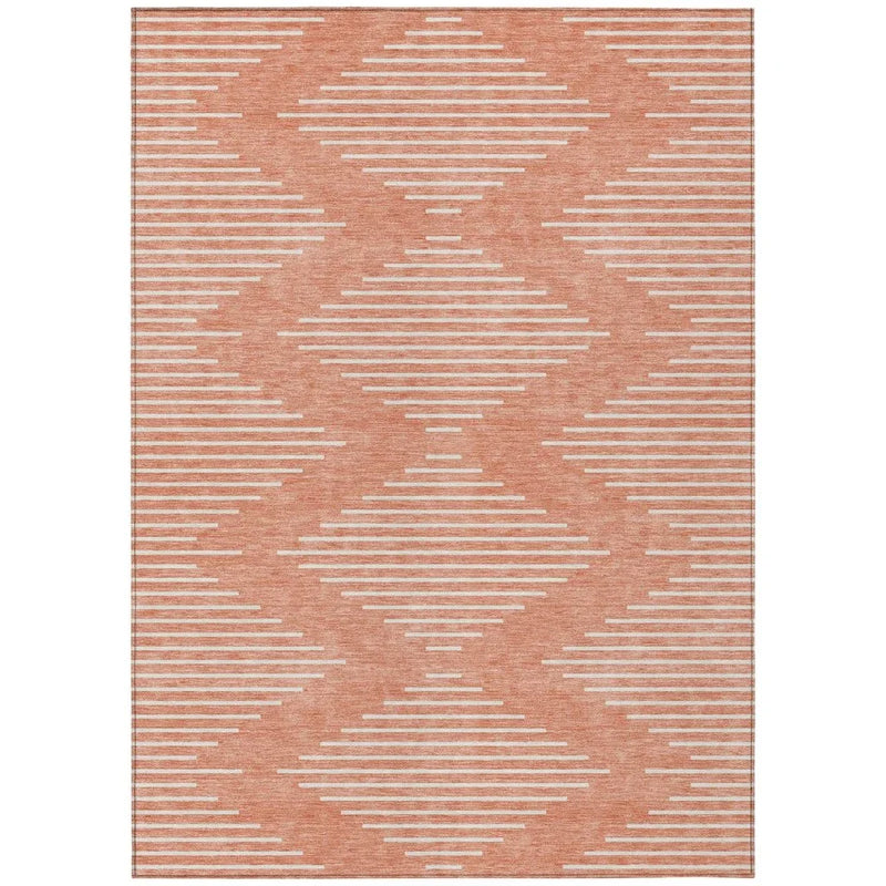 Elevate your home with a geometric area rug that blends style and functionality. The Velina Salmon Washable Rug features a striking diamond motif, perfect for adding a touch of transitional design to any space. Engineered for both indoor and outdoor use, this rug is UV stabilized, ensuring it withstands the elements while retaining its vibrant color. Its ultra-thin design makes it ideal for sliding under doors and furniture, offering a seamless look that complements any room. Families and pet owners will appreciate how easy it is to maintain, as this rug can be machine washed, keeping it fresh and clean with minimal effort.