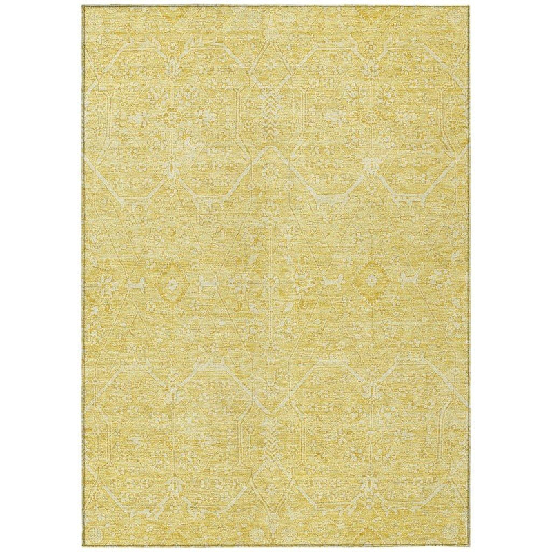 The Virellia Gold Washable Indoor-Outdoor Rug adds elegance to any space with its intricate motifs and sophisticated panel pattern. Crafted for traditional settings, its design is both timeless and adaptable, fitting seamlessly into classic interiors. The rug's gold color brings warmth and charm, making it a standout piece in any room or outdoor space. Its ultra-thin profile ensures it fits comfortably under furniture without causing any obstruction.