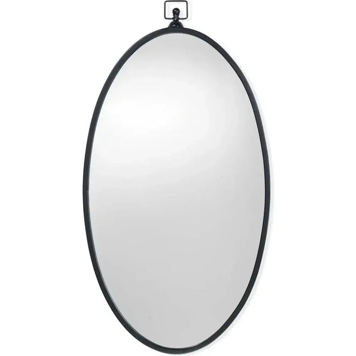 The Wade Oval Wall Mirror blends mid-century modern charm with versatile functionality. Featuring a beveled glass mirror encased in a slim iron frame, it is available in antique brass or matte black finishes. Its narrow oval silhouette softens spaces while reflecting light, making rooms feel larger. Designed with a decorative loop detail, it can be displayed alone or in multiples, hung vertically or horizontally, above a vanity, dresser, or sideboard for a timeless and sophisticated look.
