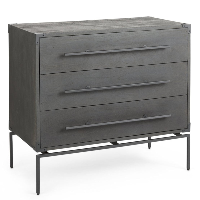 Solid wood brings both elegance and durability to the Ward cabinet. This piece is designed with an eye-catching combination of Indian Mango wood and iron, finished in a rich dark brown tone. The sturdy iron base and handles add a sleek metallic touch, making it not just strong but also stylish. With three spacious drawers, there's plenty of room to keep your favorite items organized. Simple, clean lines give it an industrial or woodland-inspired look, ideal for modern spaces. Plus, there's no need to worry about assembly—it's ready to use right out of the box, offering both style and convenience.