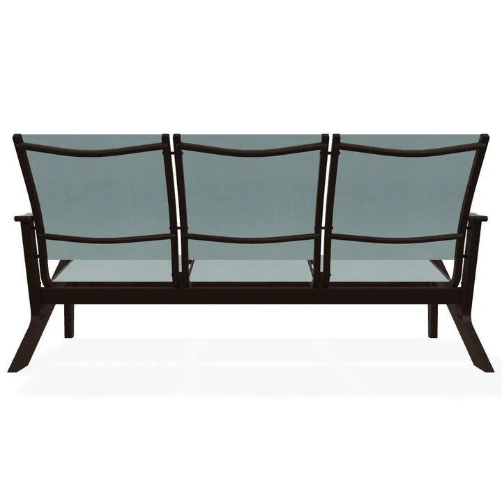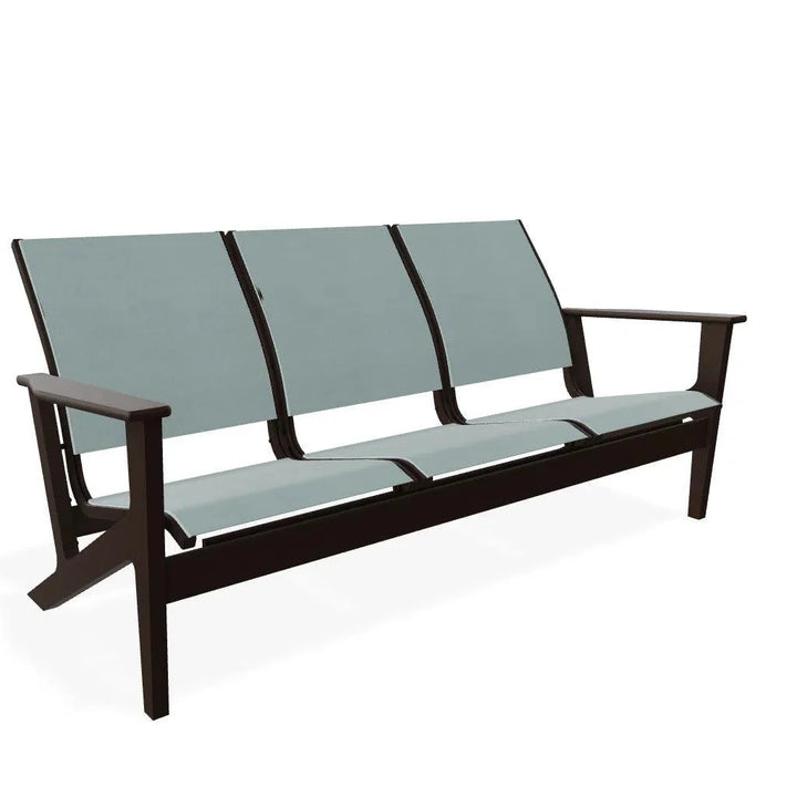 What outdoor furniture material lasts the longest? The Wexler Marine Grade Polymer Sling Chat Height Three-Seat Sofa uses marine grade polymer construction that outlasts wood, wicker, and standard plastics by decades, never cracking, fading, or requiring protective treatments.