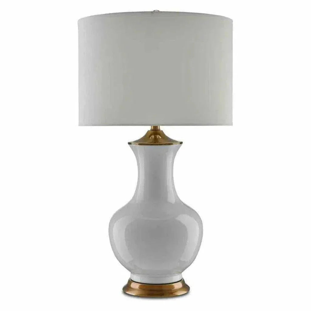 White Antique Brass Lilou White Table Lamp - LOOMLAN - Currey & Co - Table Lamps