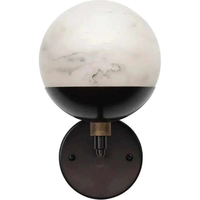 Elevate your urban environment with our White Oil Rubbed Bronze Faux Alabaster Metro Wall Sconce, inspired by mid-century design. The spherical faux alabaster shades gently diffuse light while capturing the natural veining and swirl patterns of real stone. Made with premium materials, this sleek sconce exudes a professional elegance. Its oil-rubbed bronze base and hardware elegantly complement the spherical shades, creating a unique blend of mid-century and urban aesthetics. The Metro Collection also offers striking pendant options for versatile lighting solutions. Each handcrafted shade is meticulously crafted to showcase the intricate swirl patterns and veining of natural stone. For optimal performance, professional installation is recommended. Experience thoughtful design and high-quality materials with the White Oil Rubbed Bronze Faux Alabaster Metro Wall Sconce, perfect for adding a touch of mid-century inspiration to any urban space.