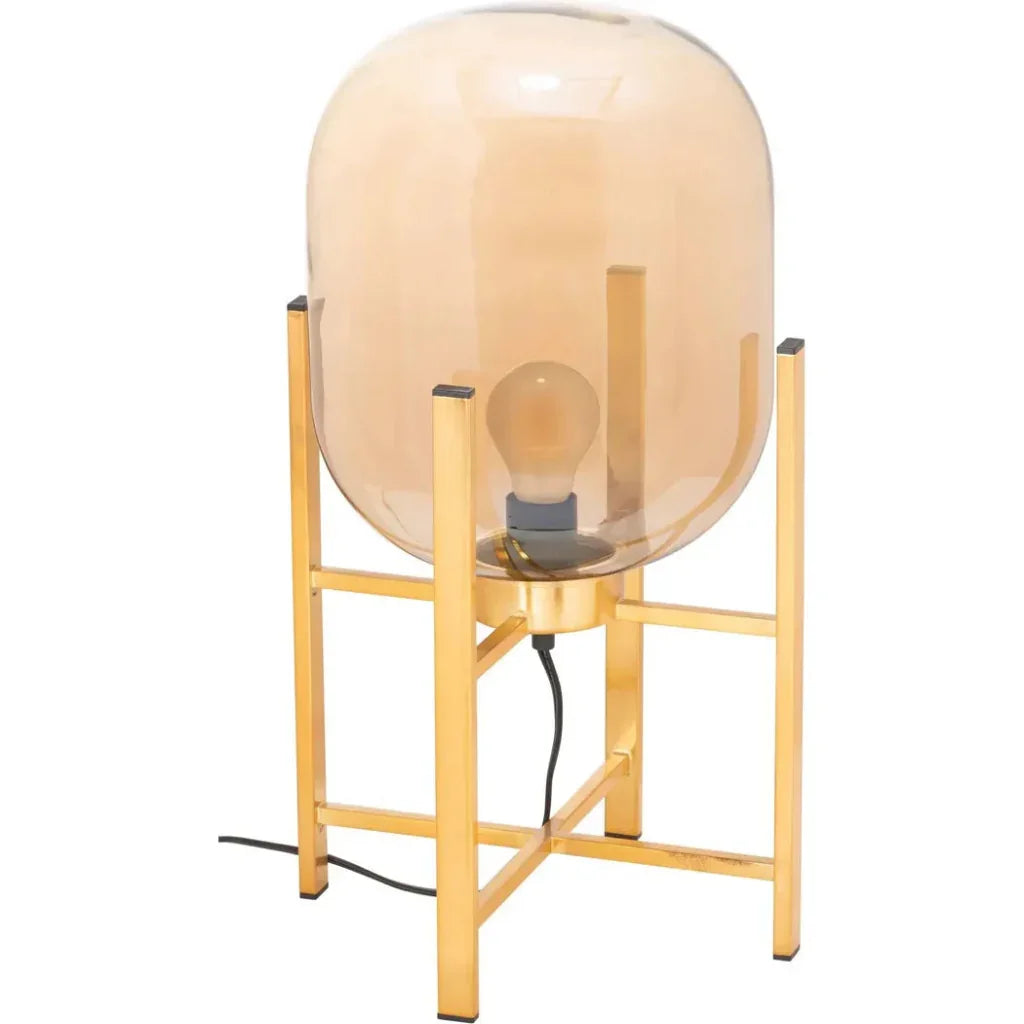 Embrace the unknown with the Wonderwall Table Lamp in Gold! This bold lamp boasts a tinted glass shade and sturdy steel frame, making it a striking addition to any room. Its compact size of 11" W x 11" D x 20.1" H and adjustable dimming feature through the in-line rotary switch make it ideal for a bedside table or desk. Assembly is a breeze with included tools, just add your preferred 40 Watt A19 Incandescent bulb (available separately) and use glass cleaner and a soft towel for upkeep. The Wonderwall Table Lamp has tinted glass shade with a steel frame.