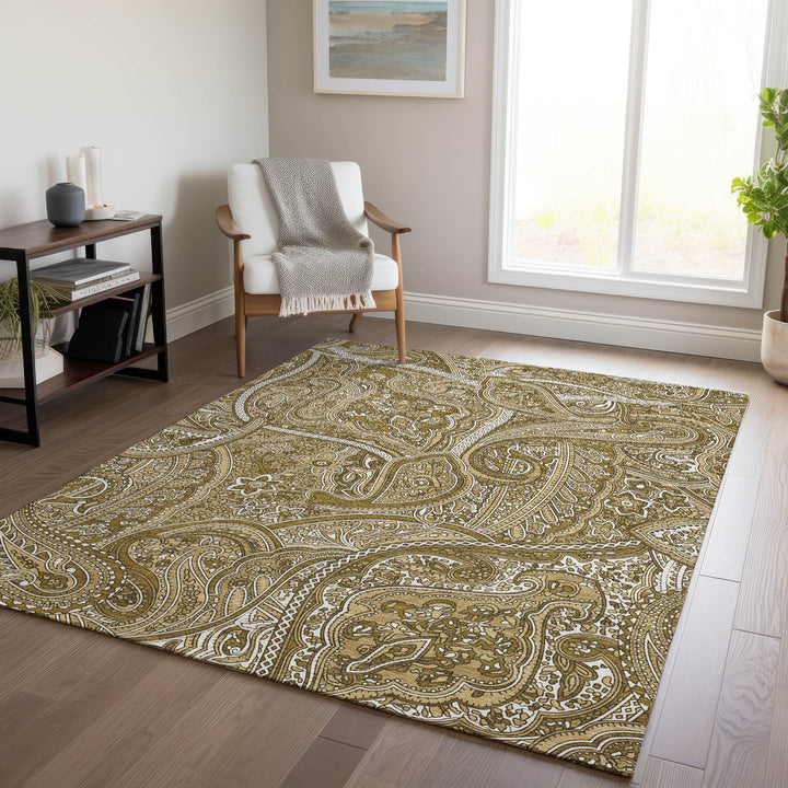 Transform any space with the Woven Blocks Brown Washable Indoor-Outdoor Rug. This rug blends traditional charm with a vintage paisley design, adding a nostalgic touch to your décor. It's perfect for both indoor and outdoor use, thanks to its UV-stabilized feature. The ultra-thin and flat woven construction includes a non-skid backing, eliminating the need for a separate rug pad. It's easy to maintain, as it is machine-washable, making it an excellent choice for families and pet owners. The fast-drying feature ensures it remains fresh and clean, even after a rain shower. Enhance your space with this elegant and practical rug.