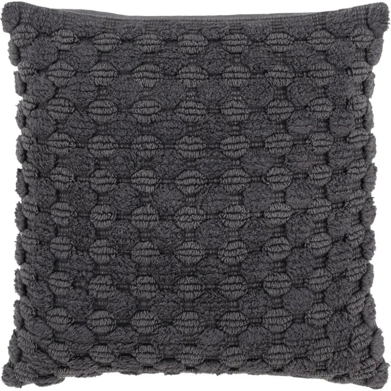 This heavily textured pillow is a dream for any decor. Rows of looped and cut pile cotton yarns give this pillow the bulk of a heavy texture but the soft, skin-friendly feel of 100% cotton. This knife edged pillow adds a craft vibe to any decor. Hand loomed, it is a substantial work of art. It features a solid coordinating back with a hidden zipper closure for ease of fill. Add modern industrial elegance to any interior with this gorgeous 20" x 20" Rizzy Home accent pillow. Expertly crafted from 100% cotton, it features a soft dimensional texture that showcases a beautiful patterned solid stripe design. With a coordinating solid cotton back featuring a hidden zipper closure for easy filling and cleaning, this rich charcoal gray pillow in a heavy weight, will add extreme texture and dimensional refinement to any upscale decor.