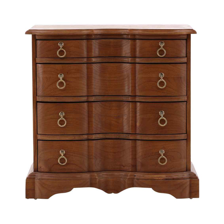 The Zepoli Chest combines classic elegance, contemporary style, and sustainable craftsmanship. Made from solid, sustainably grown mahogany, it highlights the wood’s rich tones and natural grain. Its graceful design—available in a matte pale green-blue or natural finish—is complemented by gold or brass hardware for refined appeal. With four spacious drawers, it offers ample storage while serving as a stylish focal point in any room. Perfect for bedrooms, living areas, or entryways, the Zepoli Chest blends durability, functionality, and timeless beauty, making it an enduring piece that enhances any home’s décor with both sophistication and practicality.